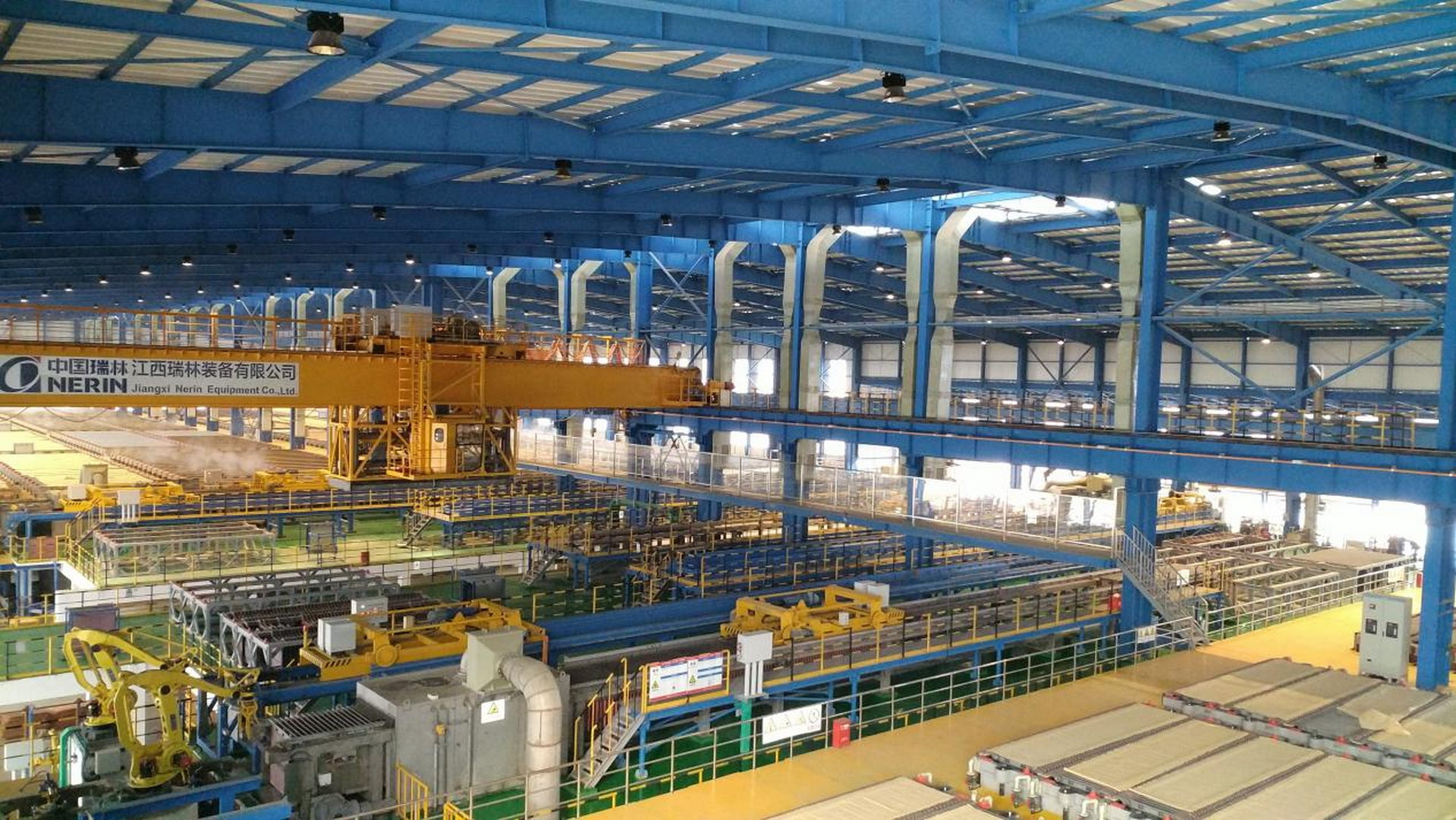 机器人取板圆盘浇铸机:功能齐全,能定量浇铸、喷淋冷却、提取废阳极、取板运送,甚至给浇铸模具喷保护涂层。全球首套“双26模”大产能圆盘浇铸机,便由中国瑞林研制,其中机器人取板技术同样是公司专利。